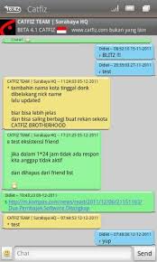 Hampir dua bula ini saya menggunakan aplikasi chat buatan anak Indonesia yang belum lama launching untuk smartphone OS Android. Nama aplikasi tersebut Catfiz, sebuah aplikasi messenger yang dikhususkan untuk OS Android ini ternyata cukup diminati oleh banyak pengguna Android di tanah air. Filosofi cinta produk dalam negeri seperti nya melekat pada para pengembang aplikasi ini, sebut saja Arfan selaku co founder menuliskan dalam kalimat pembukanya seperti “Sangat jelas kiranya bahwa energi rakyat komunikasi Indonesia yang sebagian besar diarahkan pada sebuah Produk asing yang sudah mapan, sudah selayaknya dipakai untuk membangun fondasi di rumah sendiri.“